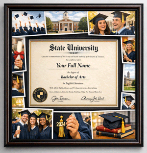 Your graduation day was likely shared with friends, family, and mentors. A collage frame captures that full experience, combining the official document with the emotional memories of the day.