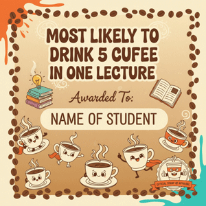 - Most Likely to Drink 5 Cups of Coffee in One Lecture