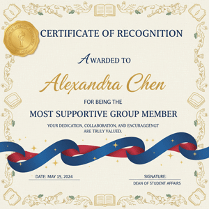 Behind every successful student is a solid support system. These awards for college students celebrate teamwork and collaboration. These are a perfect fit for peer learning programs or group-oriented classes where cooperation plays a key role in outcomes.